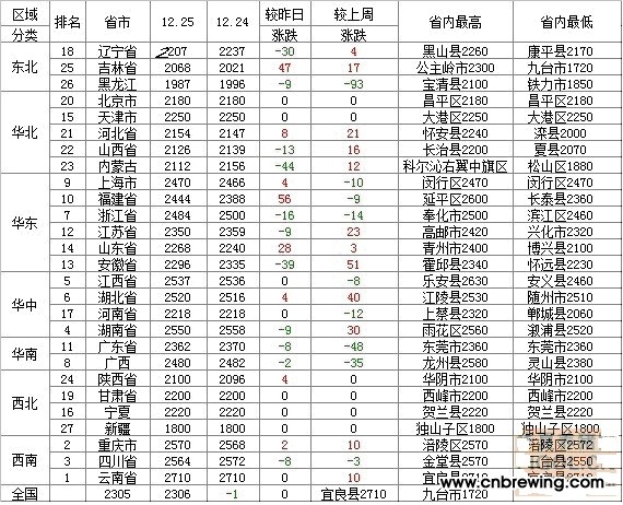2013年12月26日国内各地区玉米价格变化