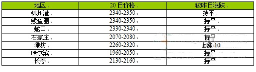 备注:鲅鱼圈地区为平舱价,蛇口港成交价,河北、山东、河南、黑龙江、吉林地区为收购价。