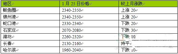 图1、1月份玉米价格涨跌表