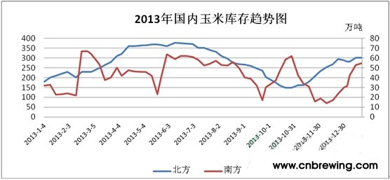 图2、2013年国内玉米库存趋势图