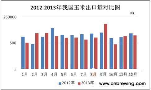 图3、2012-2013年我国玉米出口量对比图