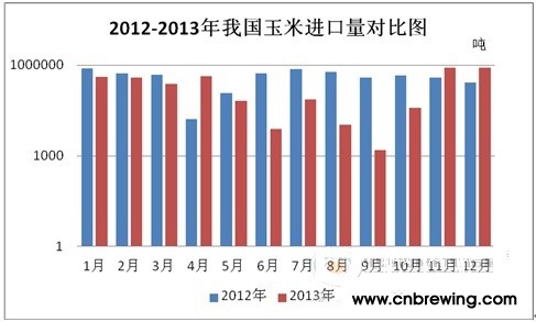图4、2012-2013年我国玉米进口量对比图
