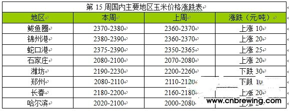 2、华盛顿4月8日消息:据私营分析机构Informa经济公司署期4月4日的月度报告显示,2014/15年度(7月到次年6月)全球玉米产量预期为9.575亿吨,低于上月预测的9.583亿吨,上年为9.646亿吨。