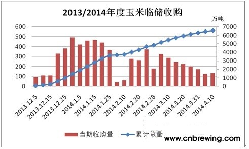 据统计,截止4月10日临储玉米收购量接近6600万吨,为6570万吨。周度收购量为134万吨。目前接近临储收购尾声,产区余量所剩不多,但是临储收购量仍不低,对产区玉米价格底部形成支撑作用。