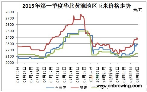 图4 2015年第一季度华北黄淮产区玉米价格走势