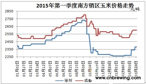图5 2015年第一季度南方销区区玉米价格走势