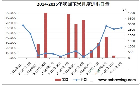 图8 2014-2015年我国玉米进出口月度统计