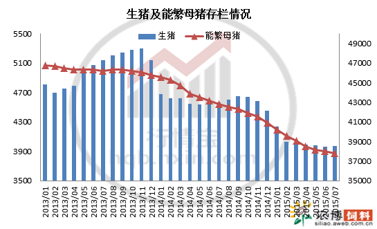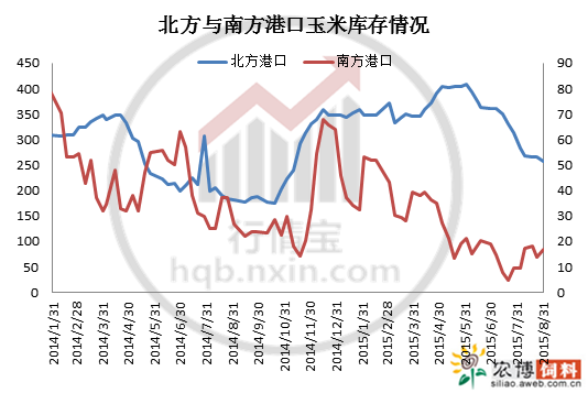 今年饲料及深加工企业对玉米的需求大打折扣,特别是饲料方面。尽管猪价在今年3月出现明显上涨趋势,但我们不可否认的是,本次猪价的连续上涨主要得益于供应趋紧,也就是说,生猪数量减少所致。农业部公布的7月份4000个监测点生猪存栏信息显示,生猪存栏环比上涨0.20%,同比下降10.43%,能繁母猪存栏环比下降0.59%,同比下降14.59%,育肥猪存栏环比回升0.29%,同比下跌9.94%。7月份生猪存栏结束了连续9个月的环比下跌,呈现企稳之势,能繁母猪存栏连续23个月环比出现下降,仍旧没有出现企稳之势。这组简单的数据很直接说明了,现阶段生猪数量较少,因此对玉米的饲用需求有限。猪价的上涨的确可以带动养殖户(场)补栏积极性,但不论是补栏母猪或者仔猪,对未来生猪存栏的增长都需要一定的周期,也就是说,价格上涨,存栏量企稳至饲用原料增加需要一定的转导时间。预计四季度或明年,玉米的饲用需求增长将会有所体现。