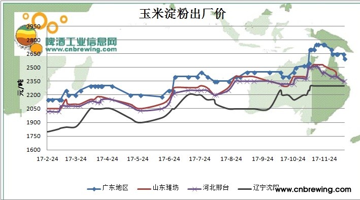 本周国内玉米淀粉市场整体止跌企稳,华北产口价格仍位于高位,下游市场需求依旧疲软,对高价接受度不高,前期低价刺激部分消费放量,深加工企业多以执行前期合同为主。目前华北淀粉主流价格2300-2350元/吨,其中山东地区糖浆主流价格2300-2350元/吨左右;西北主流价格2500-2500元/吨。其中吉林厂家发辽吉黑地区产品报价2300元/吨,发华南地区2250元/吨左右。黑龙江厂家报价2100-2150元/吨,产品价格变化快。近期东北与华北价格逼近,无竞争优势。目前淀粉市场陷入僵持阶段,现货价格下行空间有限,而下游需求放缓以及库存高企,价格也难有上涨趋势,预计淀粉价格仍维持平稳。