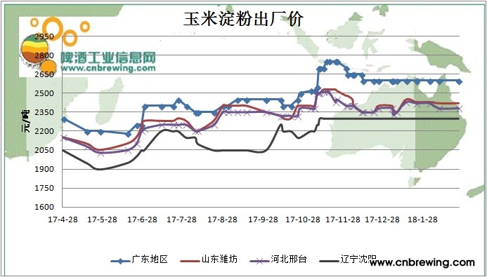春节假期仍未结束,节日气氛浓郁,由于节前接单情况一般,目前华北地区大部分淀粉企业并未开工,淀粉市场价格表现较为平稳。个别开工企业年后出厂报价跟年前保持一致,但目前下游市场并无购销备货气氛。库存方面,春节假期期间,华北地区淀粉库存持续增加中。但由于今年开工率明显低于往年,预计增长幅度较小。东北地区大部分企业春节期间保持正常开机生产,预计库存增长较华北地区更为明显,但东北地区大部分企业2月份订单在年前均有签单,年后压力表现并不大。预计节后厂家出台的玉米淀粉新价格将维持年前报价概率较大,当前市场整体的交投气氛清淡,购销尚待恢复,企业主要执行节前的合同订单,目前两会在即,对后续深加工企业的开工率将有所限制,关注后续环保题材对价格的影响。华北地区主流价格2380-2450/吨,东北主流价格2200-2300/吨,西北主流价2450-2500/吨。其中山东淀粉报价2400-2420/吨,麦芽糖浆报价2400-2450/吨。
