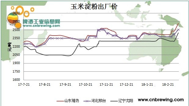 本周玉米淀粉继上周小涨后再度大涨,华北主流报价集中在2550-2620/吨,东北主流价格在2300-2350/吨,陕西价格在2650/吨,国内均价2530较上周涨75元上下。其中河北报价集中在2550/吨,山东价格在2600/吨,均较上周涨80/吨左右。往年2-3月处于淀粉消费淡季,价格上涨乏力,而今年玉米价格持续上涨,淀粉价格也高歌猛进,部分企业停报,市场执行之前的订单为主,市场还未接受大涨。目前深加工企业开工率依旧在70%以上,供应仍充裕,而下游需求有限,玉米淀粉高涨致使下游采购追涨谨慎,高价位淀粉签单或将受限。近来市场上政策性玉米拍卖消息不绝于耳,市场预期临储玉米今年提前“泄库”可能性较大,时间大约在3-4月份,不过市场对临储玉米提前拍卖能否打压玉米价格还存有疑虑,仍密切关注政策消息对玉米价格走势影响。