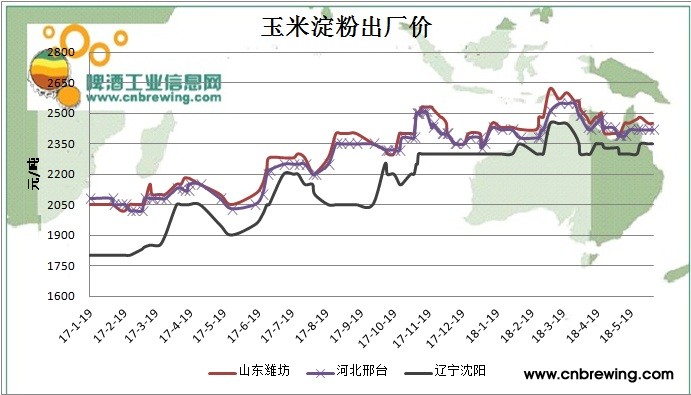 本周国内淀粉市场稳中有跌,山东市场受玉米收购价格下跌的影响,成本减弱,库存处于较高的位置,价格顺势小幅走低。东北地区在玉米淀粉补贴政策下开工率保持高位,山东部分地区受限影响开工率下降。目前淀粉消费市场呈现旺季不旺的现象,下游需求暂没有太大亮点,近期淀粉市场整体签单不多,走货不快。华北地区玉米淀粉主流价格2420-2450/吨,山东2450/吨,小跌30-50/吨;东北地区玉米淀粉主流价格2200-2350/吨,目前上合峰会对整体开工率影响不大,环保政策影对下游需求端影响大于供应端,短期内玉米弱势运行,淀粉需求上不来,价格上涨困难。
