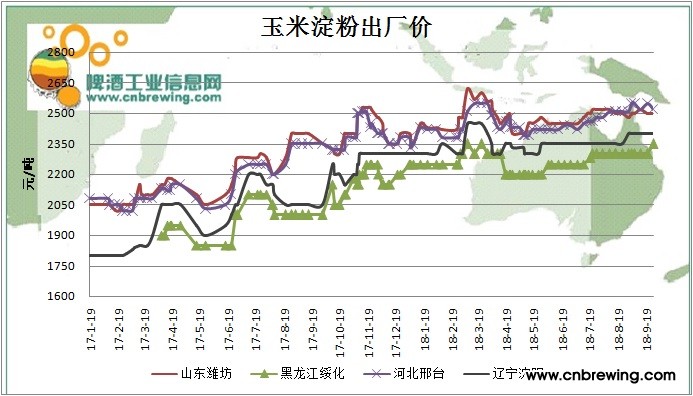 本周国内淀粉现货价格大多持稳,局部地区小幅波动。东北地区淀粉价2320-2400元/吨,山东和河北地区淀粉区间2450-2550元/吨,山东主流2450-2500元/吨,部分小跌20元/吨,东北地区淀粉厂走货暂无压力,厂家挺价。近期华北深加工企业原料收购价高开预期浓厚,将增加原料生产成本,加之华北玉米生长情况不及预期,市场对产量持减产预期,抑制淀粉价格回调,但淀粉需求偏弱,一方面抑制价格上涨。国庆假期临近,企业出货为主,现货几乎有价无市。考虑后期需求或季节性回落,开机率有望继续回升,后期行业供需大概率趋于改善,制约淀粉价格。