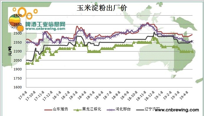 本周国内玉米淀粉现货市场稳定,东北主流报价2230-2430元/吨,华北主流报价2380-2480元/吨,目前前期低价货源在市场上流通量较为充足,淀粉市场观望气氛加重,近期行情走势尚不明朗,下游终端与贸易商多谨慎观望,短期内淀粉市场难出现实质性变化。目前国内玉米市场情绪转化明显,中美谈判虽屡次释放和解信号但最终贸易协定仍未落实,社会余粮趋紧且市场传闻临储拍卖底价或大幅提升,市场底部或已出现,受成本支撑,玉米深加工产品价格或小幅回暖。关注近期中美和谈进展情况。市场方面,山东,河北地区玉米淀粉市场主流报价在2350-2480元/吨,其中山东德州中谷淀粉报价2450元/吨,涨10;沂水大地报价2460元/吨,潍坊兴贸报价2480元/吨,跌0;河北邢台玉锋淀粉报价2360元/吨,跌0,骊骅淀粉2400元/吨,跌0;黑龙江绥化昊天淀粉报价2300元/吨,中粮龙江2200元/吨,跌0;吉林长春大成南运淀粉报价2330,跌0。