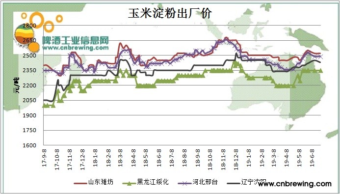 本周国内玉米淀粉现货市场价格稳中有落,整体交投一般,成交价格区间内窄幅调整。近期玉米价格震荡偏弱,纸业、淀粉糖等行业旺季启动滞缓,加上淀粉库存仍然处于高位,淀粉价格稳中趋弱运行。存高位和盈利不佳促使企业加入检修步伐,淀粉企业开机率降至7成以下。市场人士对于后市信心不足,淀粉价格趋弱微调,调整幅度累计在20-40元/吨之间。但是多数企业持续深度亏损的状态,令淀粉在成本支撑下价格下探空间有限。短期预计淀粉市场行情持续弱势僵持状态。现货市场,淀粉河北报价2490元/吨,下跌0;山东报价2480-2540元/吨,跌10;吉林报价2350-2400元/吨,平稳。