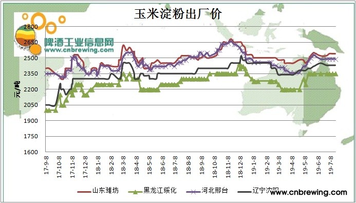 本周国内玉米淀粉现货市场价格稳中震荡。原料方面,深加工及饲料需求用量欠佳,玉米市场推涨困难,生产企业基本稳价收购,保持高库存运行,近期成本面仍缺乏有力提振。近期下游整体商谈气氛一般,需求跟进速度偏慢,终端市场高价实质性成交放量不及预期,况且主产区行业库存下降缓慢,多数企业面对当前的销售及库存压力挺价困难,成交松动明显,东北市场表现尤为突出。现货市场,淀粉河北报价2490元/吨,下跌0;山东报价2480-2540元/吨,跌0;吉林报价2350-2400元/吨,平稳。从区域来看,东北地区淀粉出厂价区间为2350-2450元/吨,华北地区淀粉出厂价区间2450-2550元/吨。