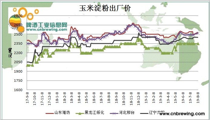 自7月份以来,淀粉消费未见明显好转,需求恢复不及预期难以对淀粉价格有提振作用。受中美贸易谈判影响,玉米价格仍在高位震荡,玉米成本走势直接影响淀粉企业报价的变动趋势。本周国内玉米淀粉现货市场价格整体多稳。短期内市场待发订单充足且部分装置停车检修利好,为玉米淀粉价格坚挺提供了稳定的支撑,况且市场货源尤其是小包装紧张状态仍在持续,因此近期玉米淀粉现货价格或以高位坚挺的走势为主。由于下游面对高价重新变得谨慎,在缺乏需求的配合下价格或难以继续冲高。现货市场,淀粉河北报价2520元/吨,涨20;山东报价2500-2550元/吨,涨20;吉林报价2350-2400元/吨,平稳。