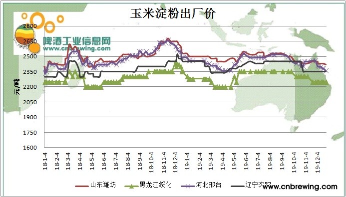 12月淀粉报价先涨后跌,11月中旬,玉米淀粉企业在经过了去库存周期后,深加工产品提价预期增强。12月初东北、华北淀粉销售报价联动反弹,在锁定远期利润的情况下,更为看好四季度淀粉的下游消费。12月中旬,受原料价格下调影响,淀粉报价承压下行。行业普遍预期,春节前淀粉下游消费企业完成节前采购之后,节后淀粉消费季节性转淡。随着四季度淀粉行业开机率增加,淀粉行业库存再度走高,这也将加大春节后淀粉及下游产品的销售压力。价格方面,截至12月27日,山东、河北地区玉米淀粉市场主流报价在2380—2460元/吨,较上周跌20—30元;东北地区玉米淀粉市场地销主流价格在2200—2400元/吨,较上周持平。12月中旬淀粉加工厂主要执行前期合同,走货尚可,企业整体库存压力不大,挺价观望。目前行业开工率恢复至70%以上,且按东北农户卖粮习惯来看,农历“小年”之后会停止卖粮,售粮期缩短至一个月,阶段性的供应松动牵制市场,下游对高价位淀粉采购依旧谨慎,目前市场仍高报低走。春节后淀粉消费进入到季节性淡季,淀粉去库存压力继续加大。