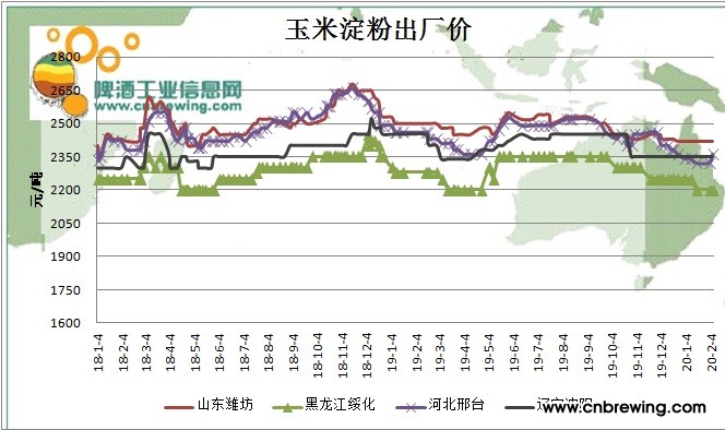 本周国内市场玉米淀粉价格整体稳中震荡,春节前玉米深加工企业多看淡玉米、淀粉行情,为春节 假期以及节后开工储力求的玉米加存维持正常或偏低水平,而节后突如其来的运行受阻使得玉米价格上扬,为淀粉价格上行提供了契机。目前疫情对行业开工率影响较大,深加工企业库存偏低,随着玉米价格上扬,价格有一定的支撑。目前山东地区主流价格为2380-2450/吨,价格暂稳;河北地区主流价格为2320-2480/吨,个别上调30/吨;东北地区主流价格为2200-2420/吨,价格暂稳。目前物流受阻,玉米淀粉现货市场整体交投难有起色,华北地区生产企业恢复生产缓慢,多数企业仍处于停机或限产状态,整体销售及库存压力不大,价格稳中局部震荡。
