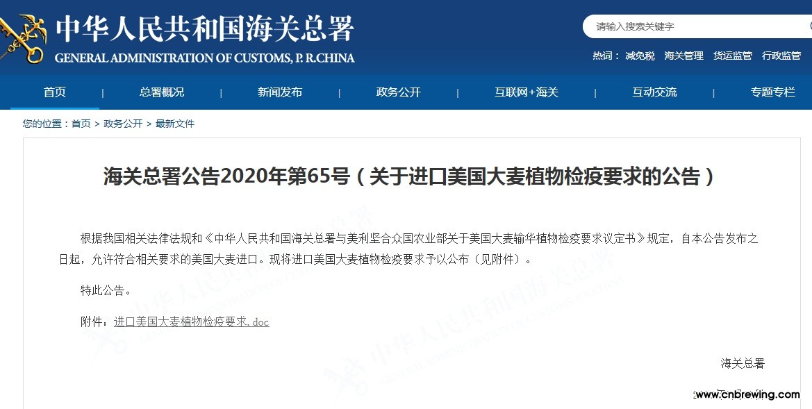 根据我国相关法律法规和《中华人民共和国海关总署与美利坚合众国农业部关于美国大麦输华植物检疫要求议定书》规定,自本公告发布之日起,允许符合相关要求的美国大麦进口。现将进口美国大麦植物检疫要求予以公布(见附件)。
