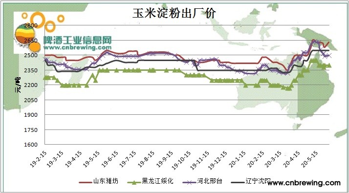 本周国内玉米市场价格继续偏强运行,淀粉原料成本持续上行,加工成本一路走高,玉米淀粉市场价格整体随之持续偏强运行。国内玉米淀粉行业库存偏低,随着近期国内疫情有所缓解,大中院校相继开学,淀粉下游需求小幅回升。同时部分企业停产检修,淀粉深加工行业开工率继续下滑,市场淀粉供应量减少,亦增加利多因素。预期短期淀粉市场价格持续偏强运行。目前山东地区玉米淀粉主流报价升至2560-2620元/吨,涨20元/吨;河北地区淀粉企业主流报价为2490-2530元/吨,跌20元/吨;吉林地区淀粉企业主流报价为2500元/吨,涨30元/吨。黑龙江地区淀粉企业主流报价为2400元/吨,涨20元/吨。