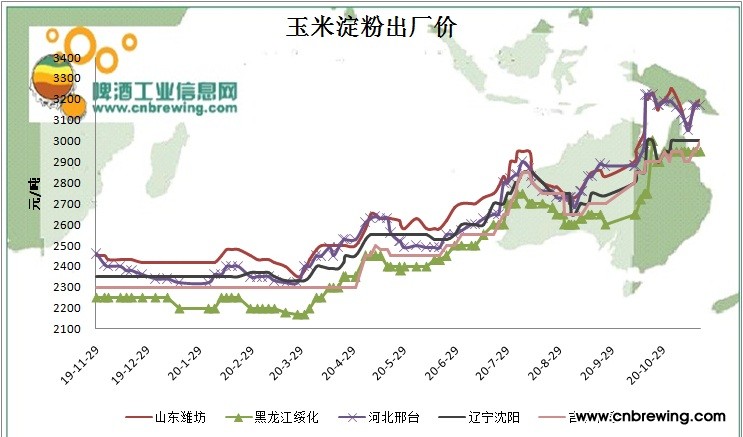 本周国内玉米淀粉均价3090元/吨,较上周上涨50元/吨左右。玉米价格上涨之后,玉米淀粉企业加工成本上涨,厂家生产压力不断加大,短期内厂家收粮进度持续不佳,玉米库存较低,以后期加工成本有一定的压力,厂家因此纷纷调整玉米淀粉的出厂价格。本周报价显示,山东地区玉米淀粉主流报价已经涨至3150-3200元/吨,河北地区主流报价3150-3200元/吨,较上周大涨100元/吨左右,吉林地区主流报价2950-3000元/吨,价格小涨50元/吨左右。现阶段下游对高价淀粉承接心态不佳,且物流条件不好,近期企业走货速度一般。山东地区糖浆参考低价2800-2900元/吨,小涨50元/吨。考虑到国内玉米市场中长期强势运行的基础依然牢固,阶段性调整空间比较受限,玉米价格或迎来强势动荡行情,淀粉将随玉米价格震荡行情。
