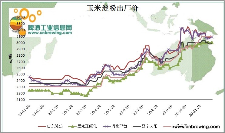 本周国内淀粉价格稳中有涨,华北地区玉米淀粉价格小幅度上涨,其中山东部分玉米淀粉企业涨20元/吨,报价区间3070-3100元/吨;河北部分玉米淀粉报价同样涨20元/吨,报价区间3090-3150元/吨。本周国内玉米价格走势逐渐转好,东北、华北地区皆有用粮企业的收购价格上涨。成本端对淀粉行情影响颇大,企业加工成本上涨,带动着玉米淀粉价格的上涨。不过淀粉下游企业采购仍保持谨慎态度,需求未见明显好转,走货偏慢,若原料价格回落使得淀粉价格随之回调。近期定向拍卖和轮换收购进行,玉米市场利空利多皆存,短期淀粉价格或维持震荡走势为主。
