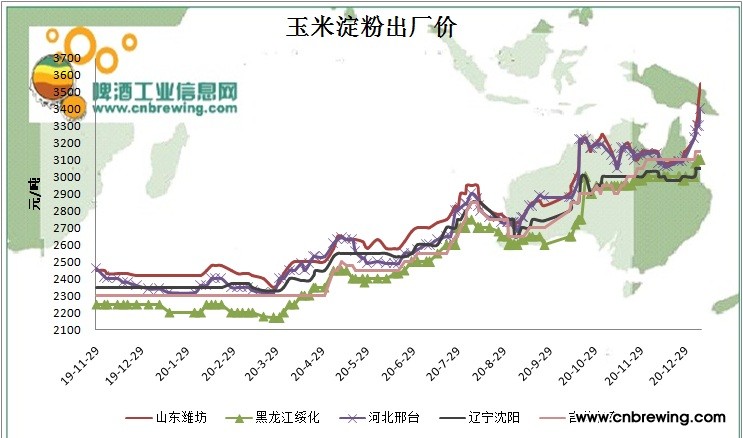 本周国内淀粉价格较节前大涨,主要因为玉米成本大涨推动。玉米的供应趋弱,是玉米价格上涨的原因之一。而玉米深加工产品的需求量以及价格的上涨,也是支撑玉米价格上涨,不可忽视的一个条件。目前山东玉米淀粉主流报价3450-3550元/吨,较节前的玉米淀粉价格涨了300元/吨。河北淀粉价格报价3300-3350元/吨,上涨150元/吨,东北地区3050-3150元/吨,上涨100元/吨。本轮玉米淀粉价格上涨依然是受到成本增加的推动,当前深加工企业原料库存低位,提价促收的意愿较强,随着原料成本持续增加,为缓解各项压力被迫继续提涨价格向下游转嫁。短期内在玉米价格上涨的强势支撑下,主要玉米淀粉企业将维持挺价心态,价格走势继续偏强运行。但随着淀粉价格不断冲高,风险也在不断聚积,高报价需求大概率缩减,基本有价无市,谨慎观望气氛浓厚,随彩随用较为稳妥,需谨慎防玉米价格高价回调风险。