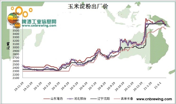 本周国内玉米淀粉均价3570元/吨,较继续下跌50元/吨。目前玉米淀粉行业加工利润较好,行业开工率快速回升,淀粉产出增多,而下游需求一直未有好转,市场购销清淡,企业库存压力渐增,截止3月16日,玉米淀粉企业淀粉库存总量达80.23万吨,增幅为7.65%,给市场形成利空打压,令部分企业继续下调淀粉报价。最近玉米跌跌不休的市场,东北地区上货量仍是处在较为高峰的时间,市场受供应压力影响,价格仍在跌势之中。淀粉价格跟随成本下跌。本周东北淀粉出厂价3500-3550元/吨,周比回落50元/吨;华北淀粉报价3650-3700元/吨,周比下降100元/吨。特别是山东、河北玉米淀粉现货价格降至3650元/吨。麦芽糖浆3400-3500元/吨,跌100元/吨。不过,玉米价格仍处在高位,在成本压力下,使得玉米淀粉企业多维持挺价心态,预计玉米淀粉将随玉米震荡运行为主。注意东北陆续有粮库开收,华粮、中储粮、吉粮等各种大小规模粮库陆续开收,市场对玉米的采购需求增加,或对玉米市场产生一定的支撑。