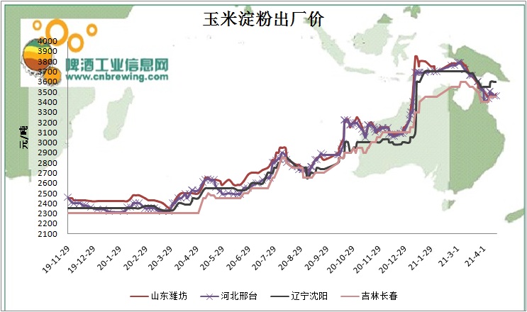 本周国内玉米淀粉均价3440元/吨,较上周跌10元/吨。玉米潮粮基本出尽,市场出货心态稳定,现货价格稳中有涨。山东2830-3020元/吨,东北2730-2770元/吨。上一波跌价贸易商利润大幅缩水,部分囤粮已接近成本线或已现亏损,导致部分贸易商重回惜售心理,挺价导致价格稳中偏强。淀粉受成本支撑,本周跌幅放缓,局部有小涨迹象。淀粉厂开机率下调至67.05%,主要是下游采购不算积极,淀粉成品胀库增幅1.1%至89.36 万吨。截止本周五,山东地区玉米淀粉主流报价3460-3500元/吨,河北3460-3600元/吨,东北3350-3550元/吨,较同期上涨1000元/左右。
