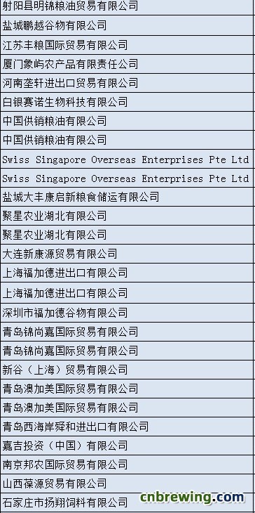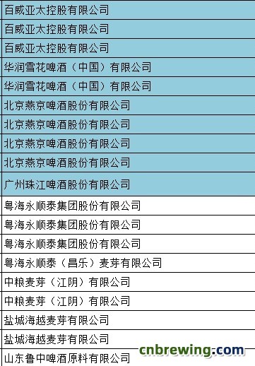 部分酒厂和麦芽厂名单公布:
