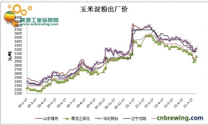 本周国内玉米淀粉均价3180元/吨,较上周小涨50元/吨,,成交商谈重心逐日上移。7月中旬以后,玉米淀粉行情却出现一波持续且较大幅度的下调。以山东地区市场价格为例,7月23日市场均价3100-3150元/吨,相比7月1日均价跌幅高达6.77%。造成淀粉价格快速下跌的原因主要是原料的利空作用。本周玉米及淀粉行情迎来过山车式反弹行情,且价格持续走高。一方面是在玉米价格经历连续下探行情后,贸易商亏损加重,出货积极性减弱。华北地区生产企业在连续多日收购量低位后,开始提价促收,叠加不良天气、市场心态、宏观环境及替代品价格变化等综合因素的影响下,玉米价格出现连续且快速的上涨行情,深加工企业挺价信心增加,意向提涨价格向下游转嫁成本及亏损的压力。其次,下游市场购销心态开始回暖,制糖、食品造纸及民用市场等多个行业签单量增加,主要企业订单量明显提升,尤其小包装走货加快,产区库存源源不断向下游转移,前期困扰企业的库存及销售压力缓解,进一步推动玉米淀粉价格继续上涨。不过在行业高库存的背景下,缺乏需求的持续提振作用,玉米淀粉价格再度上行存有一定阻力,或逐渐回归震荡调整的走势,企业将重新探寻下游市场签单的接受程度。近期需重点关注原料价格变化情况及对淀粉市场的带动作用。目前山东地区主流报价价3200-3250元/吨,较上周涨100元/吨;吉林地区3000-3050元/吨,涨50元/吨,黑龙江3030元/吨,涨30元/吨。糖浆方面,山东地区3000元/吨,吉林2800元/吨,均较上周涨100元/吨。