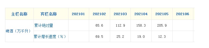 2021年1-5月山东省规模以上啤酒企业产量205.9万千升,同比增长12.3%。