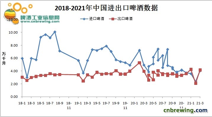 2021年11月,中国出口啤酒3.298万千升,上月为3.163万千升,同比下降2.1%;2021年1-11月,中国累计出口啤酒38.624万千升,同比增长10.1%。