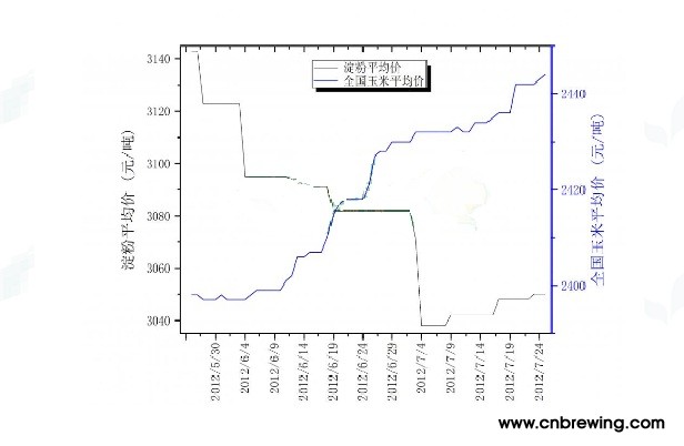 随着本玉米年度进入后期,产区供应持续减少,市场提价预期不断上升,虽然下游需求整体欠佳,但饲料刚需上升通道已开,加之美国持续干旱推动美玉米大涨,后市进口通道关闭,助推国内提价预期。国内新季玉米生长方面,目前东北产区即将进入扬花授粉阶段,华北新季也将在8月份进入授粉期,扬花授粉期、灌浆期、成熟期是对玉米单产及产量影响最大的三个关键时期,国内新作生长前期已经经历了低温、干旱、虫害,而后期三大关键期天气条件仍存在较大不确定性,国内新作单产及产量预期尚不乐观。综合以上因素,后市国内玉米现货上涨动能持续趋强,提价通道已经形成,且近期国内各地玉米价格均以强势运行为主。原料玉米价格的上涨将对淀粉行情走势产生支撑与提振效应。